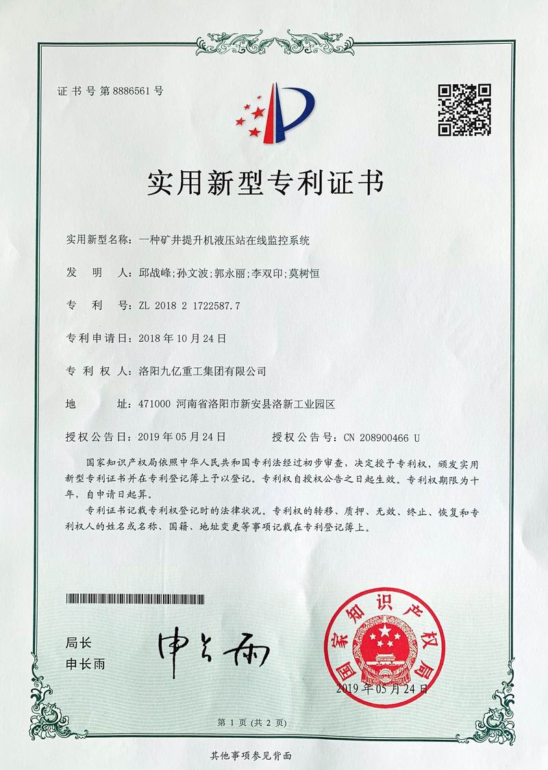 一種礦井提升機(jī)液壓站在線監(jiān)控系統(tǒng)證書